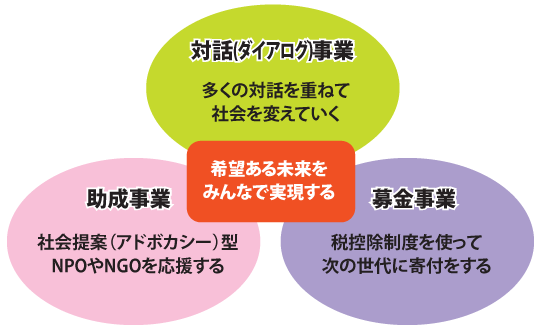 ひとりひとりの想いや希望が生かされる社会を、みなさまとともに創りあげていくための新しい仕組みの市民基金です。どうぞご参加ください。